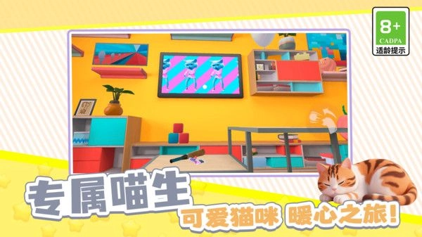 1、从猫咪的视角出发营造沉浸式体验,无论是低矮的家具缝隙,还是高处的窗台,场景细节都贴合猫咪的生活习性,跑跳时还能感受到类似毛绒触感的画面反馈。