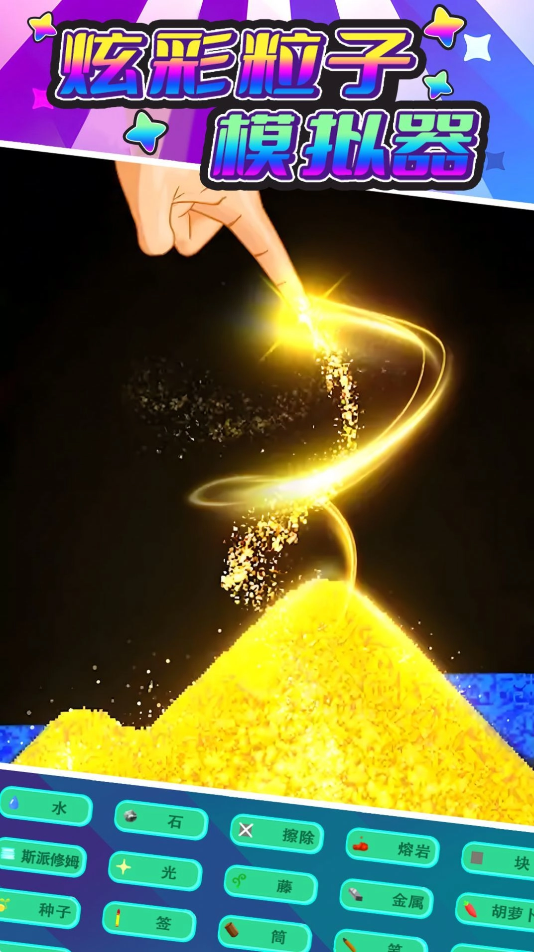 色彩绚丽的游戏背景,搭配华丽酷炫的粒子特效可供自由观赏,炫彩粒子模拟器支持灵活的指尖操作,丰富的互动挑战能为大家带来无尽欢乐。你可以随时跟随任务解锁更多精彩内容,不断收集粒子并向前探索,还能借助其他工具与技术,打造出更具个性的粒子效果。