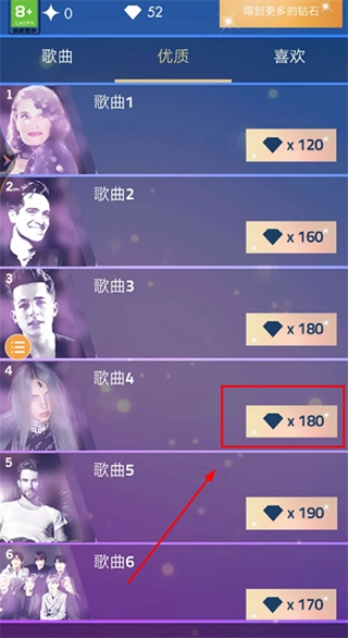 4、完成后,系统会依据你的得分给予对应的钻石奖励,这些钻石可以用来解锁其他歌曲哦!