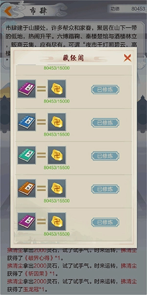 ①坊市的书在飞升前主要用来购买真诀,特别是那本10万的书。飞升之后,除了真诀书之外,其他的书可以等正气或邪气足够时,通过帮助或打劫的方式获取,这样能省下不少钱。其中1层需要500正气或邪气,2层需要1500,3层需要3000。10万的书和高阶虚空石都可以通过打劫或帮助来获得。