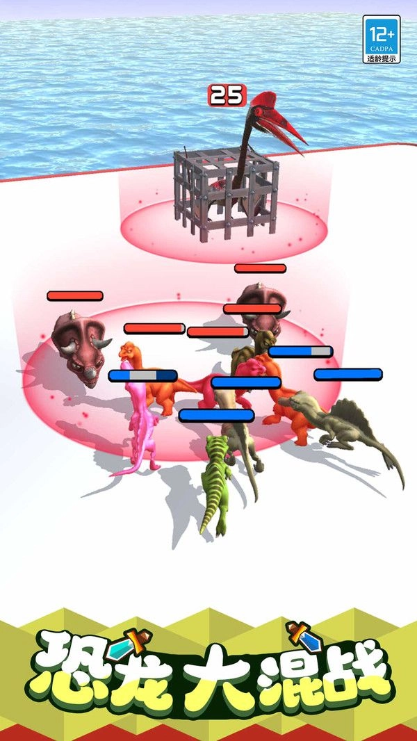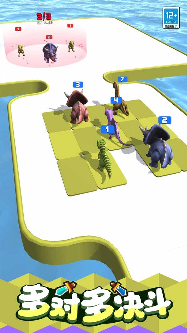 3、操控升级后的恐龙参与多对多决斗,运用策略击败对手,赢得胜利,解锁新的游戏内容。