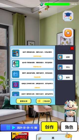 4、能依据玩家的策略思路来安排学习,要留意上方的电量,每次进行学习都会扣除相应的电量。