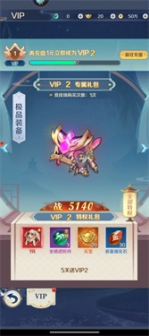 1、这款游戏对新手玩家相当友好,玩家只要通过第五关,就能马上获得VIP2。