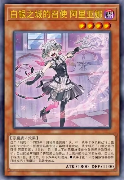 二效果回收墓地资源,是白银城续航的主要来源之一。有助于我方循环利用针对性陷阱,达成多回合压制效果。自肃比较微小,但还应多加留意,避免前场无恶魔、后场陷阱无法发动的尴尬场面。但本身没有与特招相关的效果,先手上手不好处理。