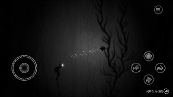 游戏独树一帜的“海洋哥特”视觉风格颇具特色:整体采用纯粹的黑白手绘形式,仅靠潜水器的灯光、生物的眼睛等少量光源来提供照明。这种极简却不失细节的艺术设计,成功营造出极致压抑、孤独又饱含诗意的深海氛围,视觉冲击力十足,每一帧画面都宛如一幅黑暗系的艺术品。