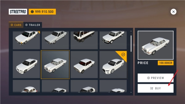 1、先从主界面进入车库,这里有不少汽车可供挑选,未解锁的需要我们购买。