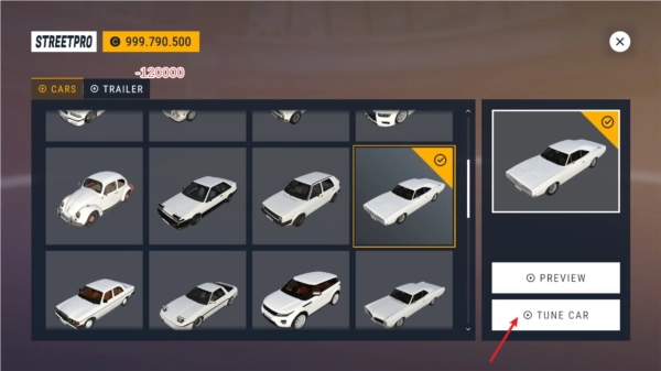2、购买好之后,点击TUNE CAR,我们就能够对汽车进行定制了。