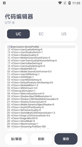 整合 UC、EC、US 三种文件的修改功能,支持对游戏底层代码进行调整,满足进阶用户的个性化画质需求。