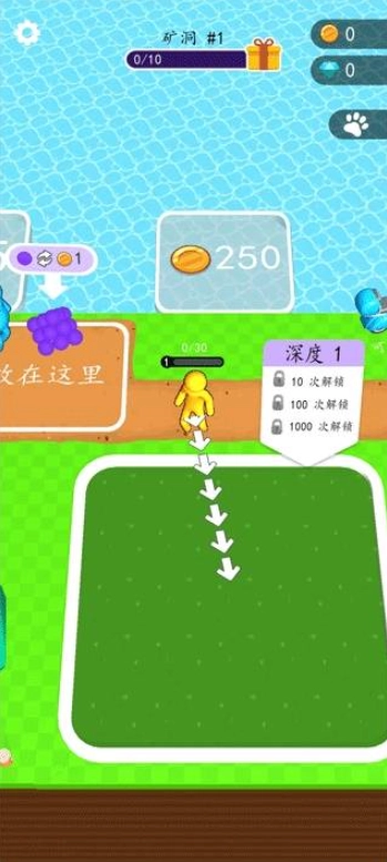 1.玩家可以通过挖矿来获取矿物资源,这些资源能用来和NPC进行交易,从而获得金币,用金币可以扩大海岛的面积。