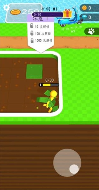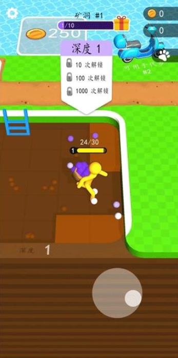 4.虚拟摇杆操作,角色自动挖矿,操作简单