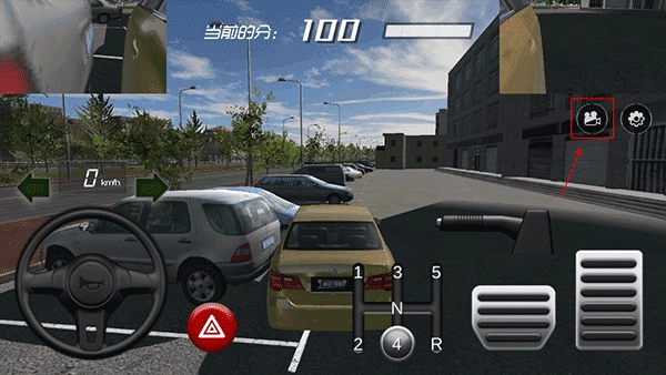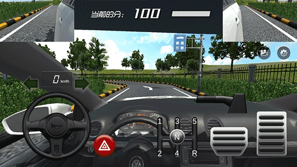 进入相应的模式下,左侧方向盘,中间档位,以及右侧的制动和油门一览无遗,上方实时呈现你的分数,左右上交分别是你观察到的后视镜,同时也可以开启车外模式,帮助你更好的找到驾驶的技巧和手感。