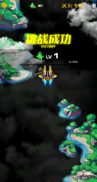 4、完成任务可以进入下一关,不断的提高战机的等级,威力会更强。