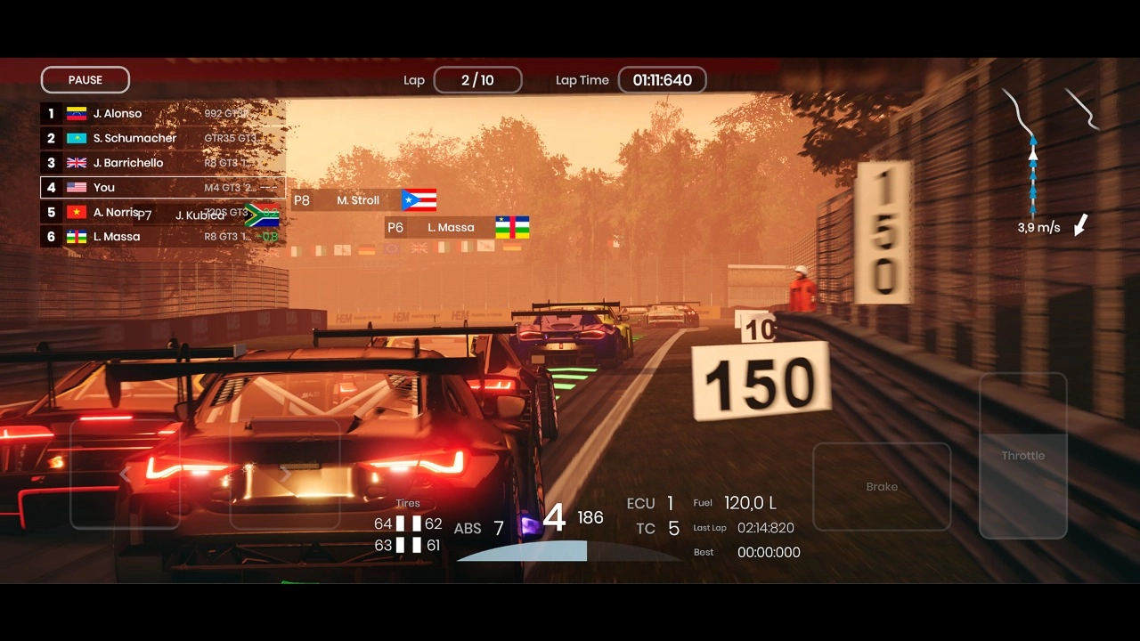 真实物理引擎:游戏融入真实物理模拟机制,涵盖轮胎磨损、温度变化、胎压状态以及抓地力衰减等细节,助力玩家沉浸式感受专业赛车的驾驶体验。