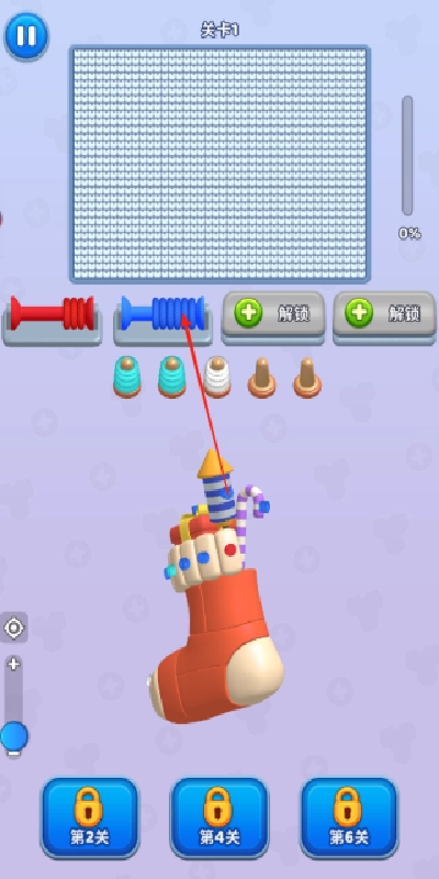 2、毛线球堆叠形成的拼图结构多样,随着关卡推进,堆叠方式更复杂,目标颜色切换更频繁挑战逐步升级。