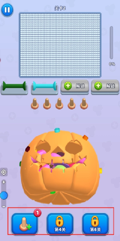 2、通过三球连线机制,集齐 3 个相同颜色的毛线球即可消除,同时解锁该色彩,用于绘制专属像素画。