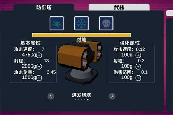 4、您可以通过升级获得更强大的防御塔,升级防御塔的基础属性,以及战斗内强化属性;