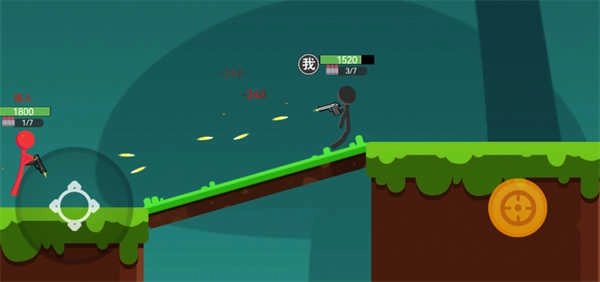 3、玩家可以通过左下角的摇杆来控制开枪的角度;