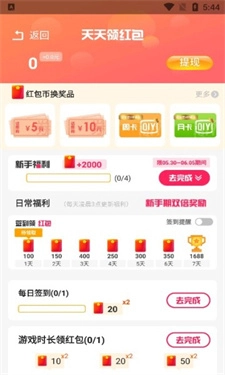 4、还可以通过签到、完成任务来领取金币获取红包;