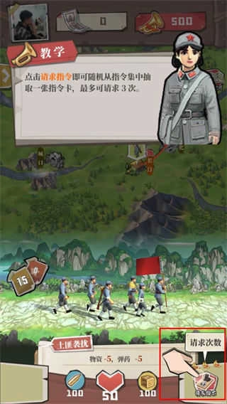 4、玩家可以点击请求指令随机获得一个指令卡,最多可请求三次