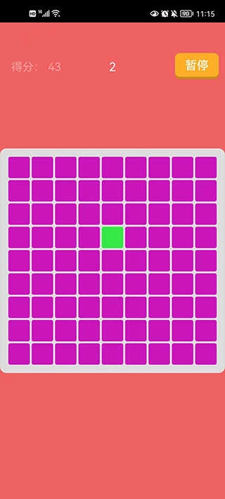 1、游戏很简单,就是找到不同颜色的一个正方形,点击它就会加大难度,最多可以变成横排7个,竖排7个。