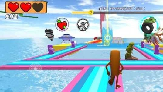 4、赛道中设置弹簧垫、加速带、移动平台交互元素,需灵活运用策略通过复杂地形。