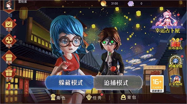 游戏启动后,主界面会直接显示身份选择面板,点击“躲藏者”图标就能进入准备环节。