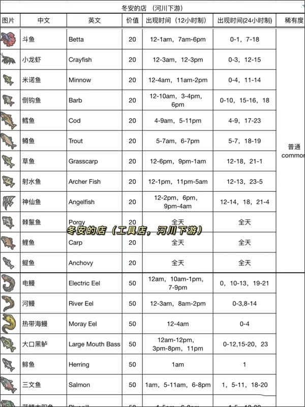 小镇公告板每日更新高价鱼种情报,对应鱼获只在限定时辰与指定水域出现,耐心观察才能满载而归。