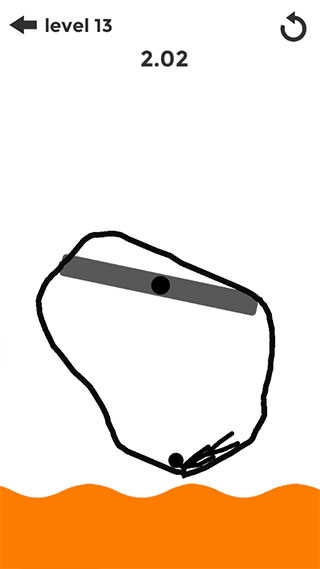 3、这一关的人物下面是个跷跷板,将跷跷板个火柴人整个围起来就过关了