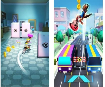 在途中抓住所有盾牌并穿过障碍物。使用蹦床和动力滑梯来增加跳跃并帮助Gopal获得更多硬币。
