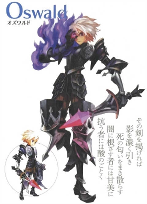 为了报答对自小抚育他长大的养父梅尔文的恩情,无论多么苛刻的事情都为其达成。其手持的魔晶之剑是梅尔文交托给他,能运用常人无法驾驭的黑暗之力葬送敌人。