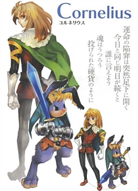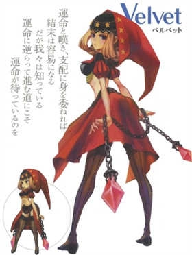 被亡母所预言的“死亡”和“诅咒”所困恼,想要勇敢面对这个命运,其由串连魔石制成的魔晶锁链是母亲的遗物,平时虽然温文尔雅,但在世界终焉前为阻止预言而奔走世界各地。