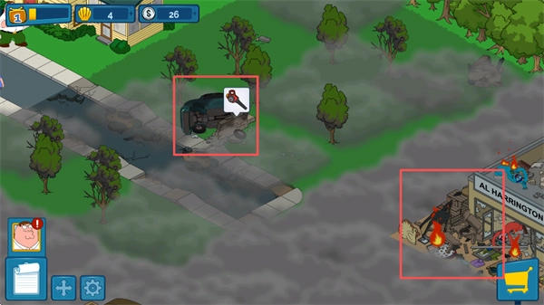 恶搞之家紧密跟随动画原作的故事情节,玩家将在一个充满荒诞幽默的世界中进行模拟养成类冒险,游戏的风格延续了动画中的无厘头幽默,开场即是彼得·格里芬与火鸡的世纪大战,在一场惊心动魄的战斗后,玩家点击救起彼得的瞬间,游戏正式拉开序幕。