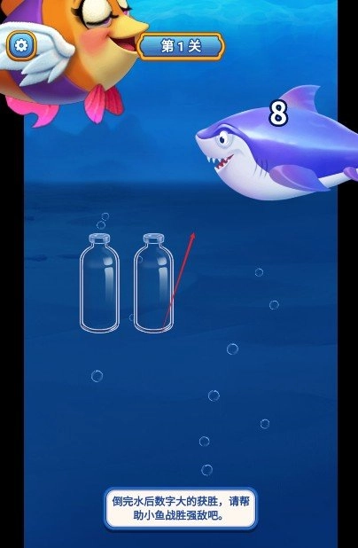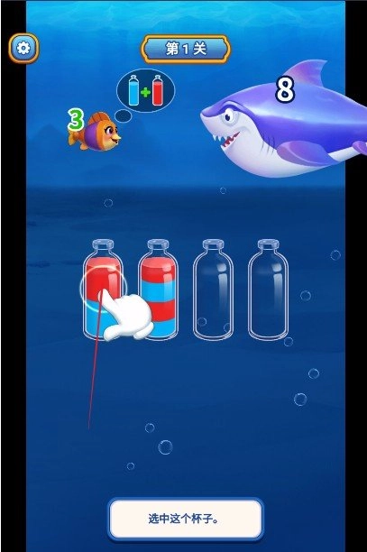 玩家需要将其他瓶子里面的水,通过将相同颜色的装在一起完成对水的排序才可以完成关卡任务。
