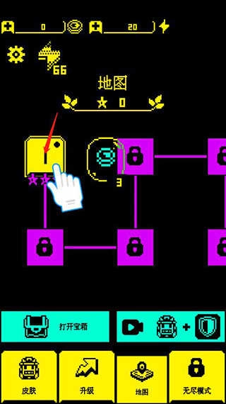 1、打开游戏后,点击关卡即可开始闯关;