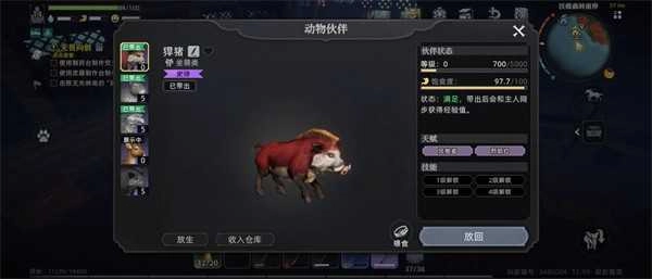 碎木野猪啃咬树干时自带震荡效果,山羊撞击岩石会触发碎裂反馈——宠物不是装饰,而是延伸你双手的工具,它们的动作逻辑深度嵌入采集机制之中。
