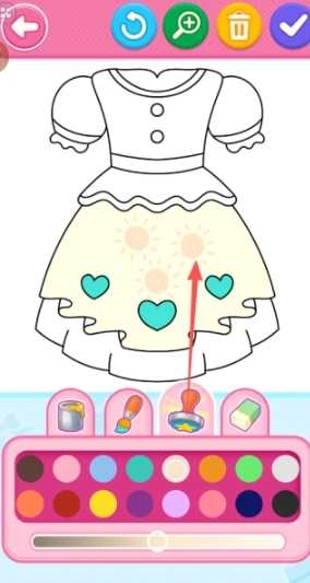 2、挑选喜欢的服装样式,并为其添加颜色和图案进行美化。