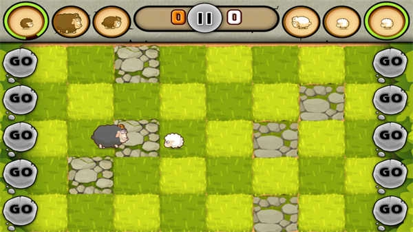 战略模式中,战场被划分为五条横向通道,你需在恰当时机向指定路线派出绵羊。对方同样可以拦截反制,攻守转换瞬息万变。成功将羊只推至敌方底线即可得分,而羊群踏过的草地会自动转化为你的势力范围,持续积累分数;但一旦己方单位被顶回已占领区域后方,这片领地便会立刻失效,掌控权随之易主。