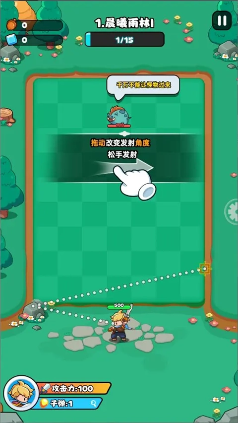 1、长按拖动调整弹道,松手即可发射(注意力度条控制)。