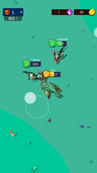 2、每次进化都会提升恐龙体型和等级,通过吞噬弱小对手在竞技场中生存。