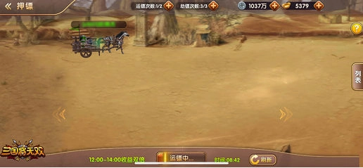 主公可以选择汗血、灰影、奔雷、乌雅、赤兔五种品质的镖车,级别提升伴随路途延长、还得支付额外的发车费用,但收益率也会非常可观。之后选择投入成本,从元宝、高级精炼石、高级经验药水等资源中自由装载,当预期收益从“无”到显示具体数额后,则表示本次你能额外获得这些资源。