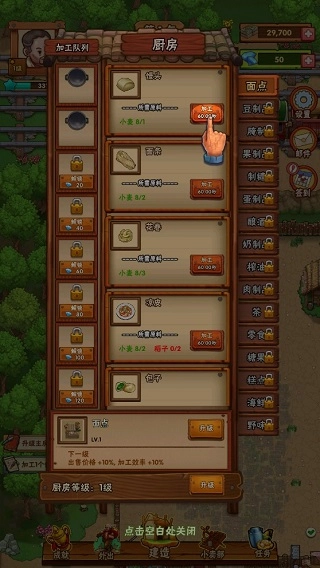 现在学习一个加工制作,点击外婆也就是厨房的位置,在这里可以加工产品。加工产品需要原材料。
