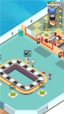 5、招聘员工,捕捞海鲜,搭建厨房,乃至设计旋转寿司输送平台,为顾客打造别具一格的体验。