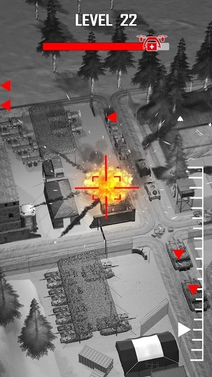 1、沉浸式战斗场景:《军用无人机袭击》运用顶尖游戏引擎,打造出极具真实感的战斗画面。玩家能深入城市街巷、沙漠荒漠、雪山高地等多样作战环境,切身体验实战般的紧张刺激。