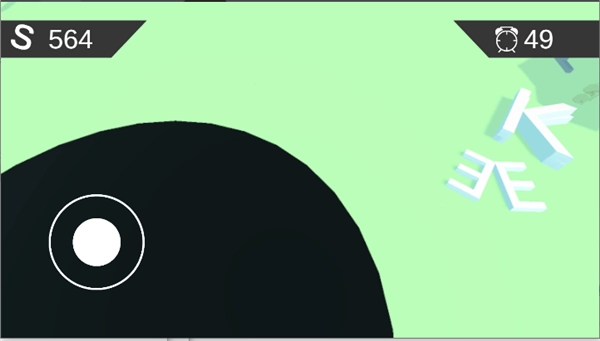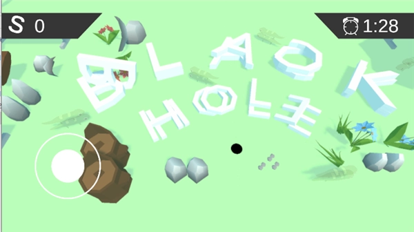 3.通过虚拟摇杆操控黑洞移动,吞噬体积小于自身的物体获得质量增长