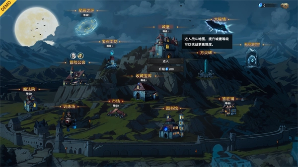2、在主界面中有着丰富的功能玩法,这些就留给玩家们自己探索吧,下面点击城堡进入战斗地图;