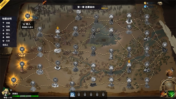 5、这里选择第一把武器开始,进入地图后玩家可以发现游戏是以肉鸽爬塔的形式进行的,地图中有着各种战斗、精英、随机以及奖励事件,这里根据玩家喜好选择路线即可;