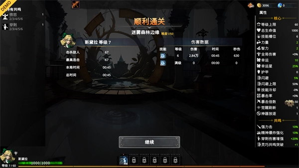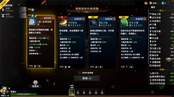 7、在关卡中角色设计可以选择奖励,包括各种技能以及升级,将单独的技能升级到满级可以解锁强大的超品能力;