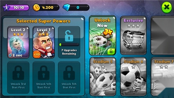 4.从125位拥有独特技能且可升级的角色中精心挑选,搭配已解锁的创意配件,打造出你心中理想的足球巨星!在逐梦之路上不断奋斗,解锁风格各异的体育场,吸引大批热情粉丝,成为人气偶像不再是遥不可及的梦想!朝着终极足球英雄的目标全力进发,凭借独特的风格与精湛的技巧,征服每一片赛场。
