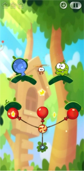 萌趣画风:沿用经典的卡通风格,色彩明亮鲜活,角色造型可爱讨喜,小怪兽Om Nom与新伙伴们萌态尽显,为游戏营造出轻松愉悦的氛围。