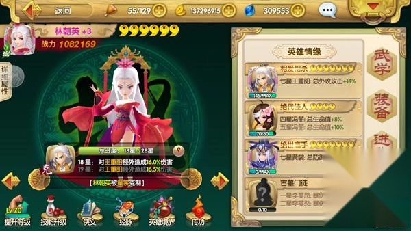 总结:总体而言,林朝英是一个用起来比较容易,强度超高的一个PVP型的英雄,她的技能几乎能够反制所有英雄。如果拥有的话是必不可缺一定要上阵的人选。当然,如果手中并无此英雄,想要克制她的话,首先就是要准备好随时躲避她的控制技能,可以尝试使用走位型的英雄,比如欧阳锋,用毒后就离开。走位是战胜林朝阳的重要法则,跟她战斗时千万不可硬扛,会死的很惨。最后说一句,林朝英和王重阳会触发一个非常恐怖的连锁,那就是战斗时替换王重阳上阵可以触发被动技能进入4秒旋风狂暴状态。